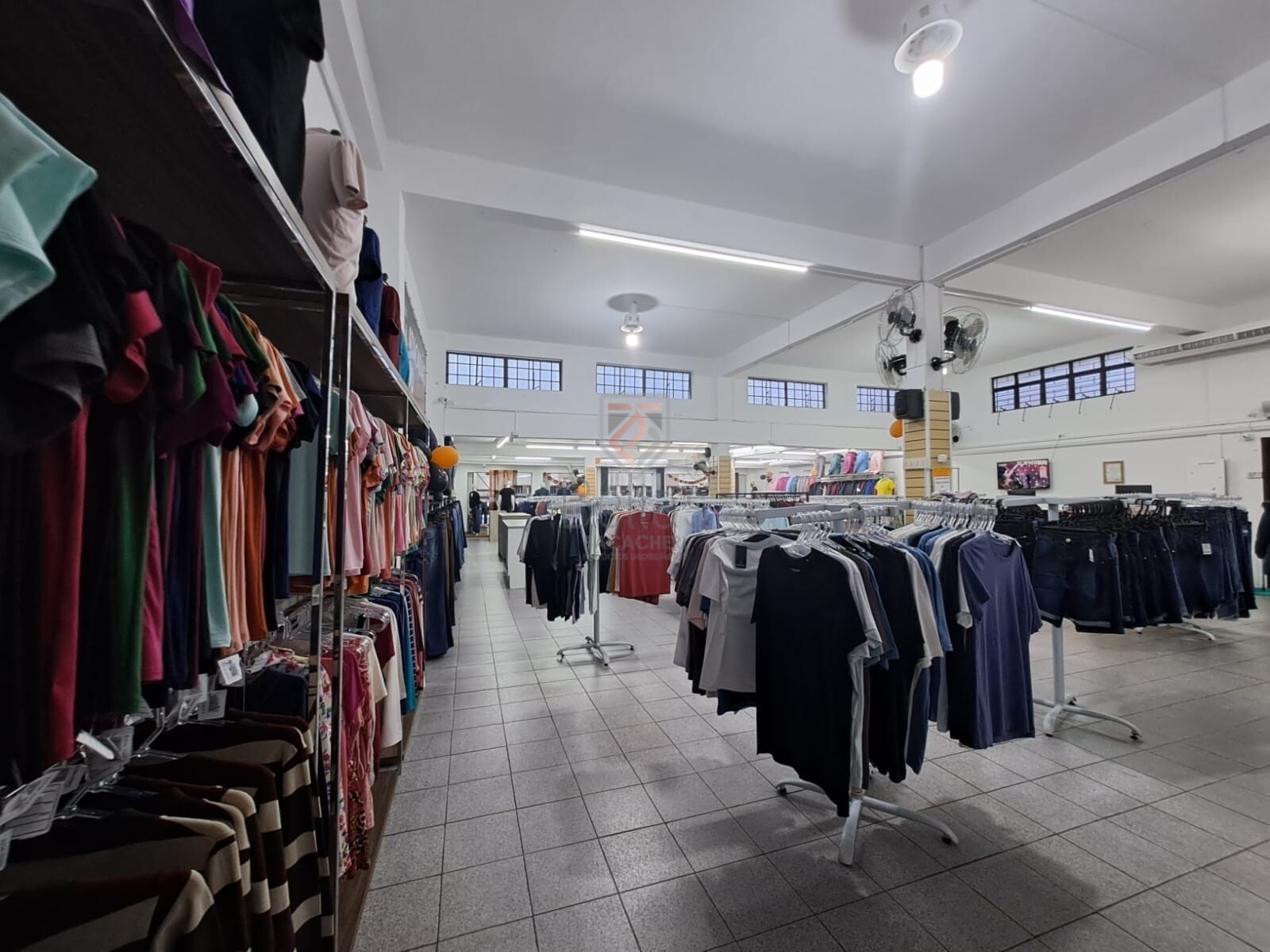 Térreo com Aproximadamente 395m²: Pé direito de 3,5m, banheiro para clientes, provadores, balcão e caixa.